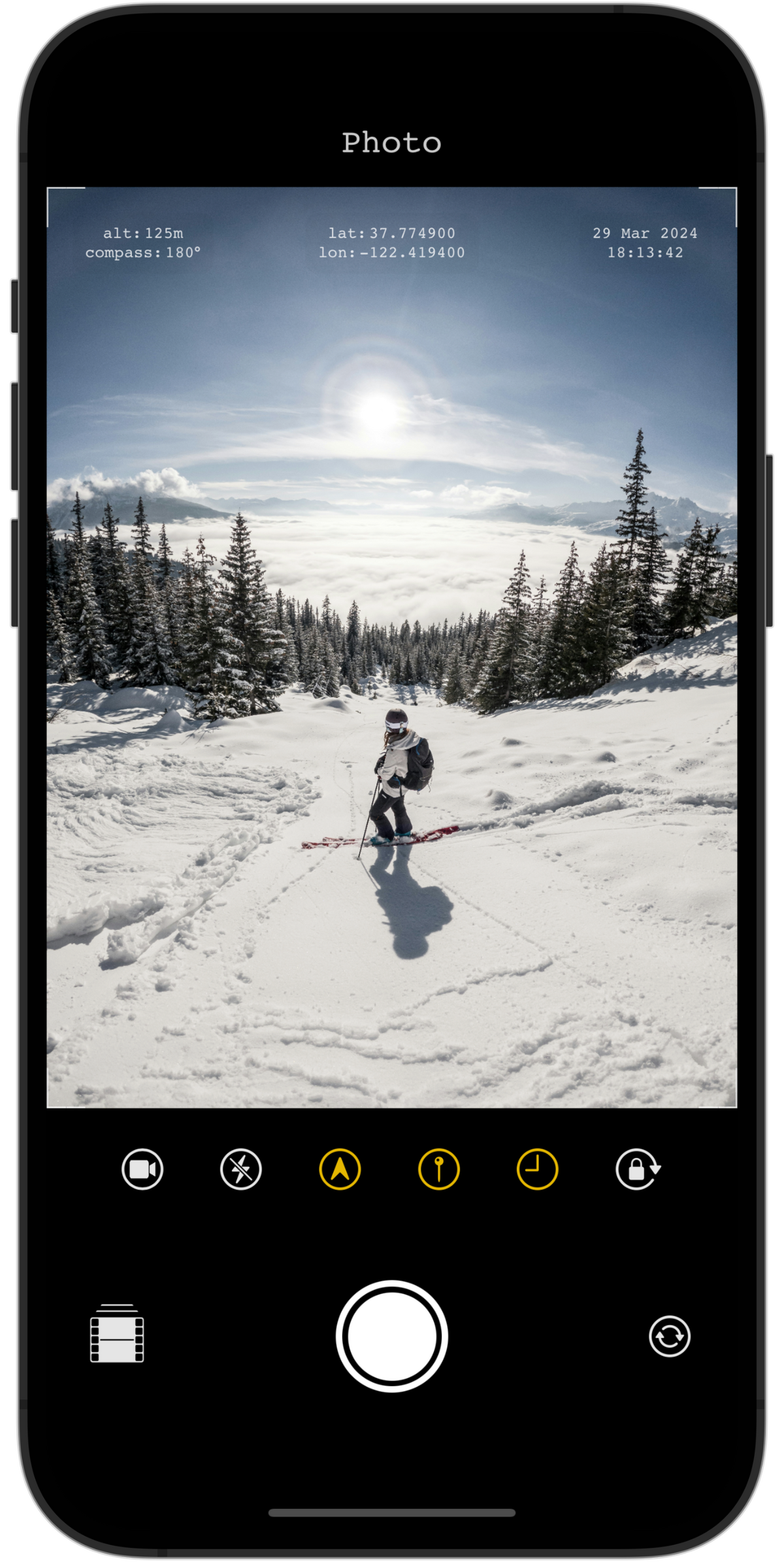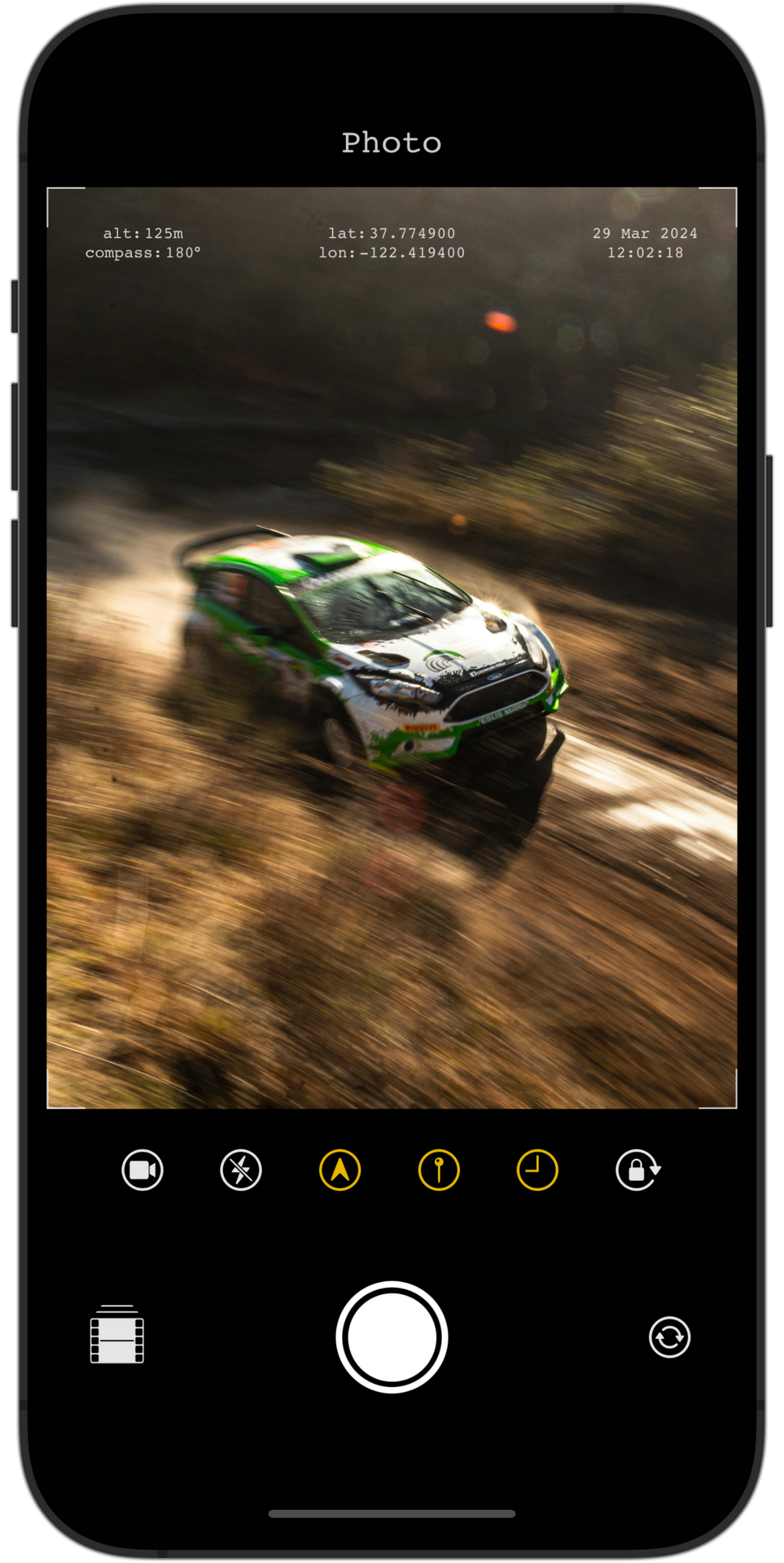If you grant the app permission to access location services on your device, the app collects GPS location data to integrate it into the images taken via your device's camera. This feature allows location information to be included in your photos ("burned in") for your reference. The app stores image files within its internal storage system on your device. These files contain embedded location data and are used to support specific functionalities like creating video files or previews. Please note, these image files are only kept on your device and are deleted as soon as practically possible.3. Data Sharing